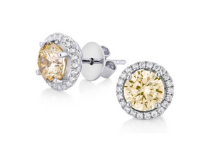 These elegant canary yellow and white CZ halo stud earrings offer a touch of subtle sparkle. Featuring a brilliant round center stone surrounded by a shimmering halo, they are perfect for everyday wear or adding a delicate touch to any occasion.