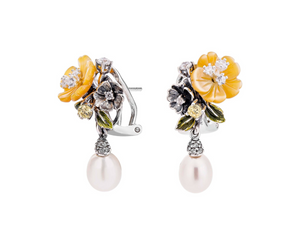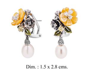 Yellow Floral Pearl Drop Earrings